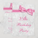 25th Birthday Party Damask and Pink Faux Bow Invitation