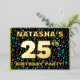 The front of this upbeat and fun twenty-fifth birthday celebration/party foil invitation card design features a personalized name, a large number “25th”, the message “BIRTHDAY PARTY!”, and a border. The background of the front features a vibrant, multicolored music notation symbols pattern. The back features personalized details about the event, such as the date, time, venue, and any other information that may be important. Editable invitations like these might be a fun way to invite attendees to a birthday gathering/party being held to honor somebody’s 25th birthday. These might be more meaningful if that person is a singer, a musician, a songwriter, a composer, or otherwise loves music. [~Z0000601]
