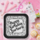 The background has a black and white random number pattern with milestone number 25 repeated in varied sizes and angles for an all-over print. There is a white square in the center for your text and a black and white frame around the rim. It is a fun idea for your 25th birthday party or for all occasions, personal or business, where you feature milestone number twenty-five. Simply change your text to match the event.