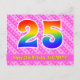 The front of this loving, happy, and cheerful birthday themed postcard design features a large number "25" having a rainbow spectrum gradient inspired pattern. It also features the message "Happy 25th Birthday,", and an editable recipient name. The front additionally has a joyful dark pink and light pink striped pattern with heart shapes. The back features a customized birthday greeting message, or could perhaps be cleared and left blank if a message is to be written by hand instead. A personalized birthday postcard like this might be a fun way to celebrate somebody’s twenty fifth birthday. Postcards like this might also be used to invite guests to a birthday party or celebration being held for somebody who is turning 25 years old. [~Z0000449]
