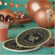 It’s simple to add your name, initials, or monogram to the center using the provided text templates. This cool design features a gold random number pattern with the milestone number 25 displayed in various sizes and angles for an all-over print. A circle serves as the center for your text, while black and gold rings adorn the rim.