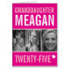 Graphic hot pink, soft pink and white with a little white heart 25th Granddaughter birthday card. Bright graphic birthday card with three placeholders for your own photos and to customize with your own name, age, and inside message. Unique design by www.mylittleeden.com