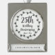 Save the memories of a 25th Silver Wedding Anniversary with this silver plated ornament that features a dark silver color ivy wreath design along with stylized script notating 25th wedding anniversary and anniversary date. As well, there is a banner area on the bottom area of ornament for the names of the married couple. Edit your ornament to replace date and names with your own. Makes a great, little anniversary gift!
