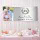 A banner celebrating a 25th wedding anniversary. An elegant faux silver colored background, decorated with a eucalyptus wreath and number 25. Personalize and add your own photo of the happy couple. The text: The names is written with a black modern hand lettered style script. Tempates for names and a date. Can be used as a party welcome sign, party wall decoration and a keepsake.