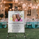 Celebrating a 25th silver wedding anniversary. A faux silver looking background, decorated with white florals and lace. Personalize and add your own high quality photo of the happy couple. The text: The names is written with a black modern hand lettered style script. Tempates for the names and a date.