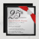 Elegant Silver and Black 25th Anniversary Party Invitations with simulated red ribbon and rhinestone heart -- Customize the name, date, and details for this happy occasion. **NOTE: Sized for SQUARE invitation cards. Matching postage and thank you cards available. EXTRA POSTAGE REQUIRED ON SQUARE INVITATIONS.