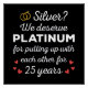 'Silver? We deserve Platinum for putting up with each other for 25 Years' quote for a couple who got married 25 years ago or a couple renewing wedding vows on their silver anniversary.