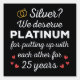 'Silver? We deserve Platinum for putting up with each other for 25 Years' quote for a couple who got married 25 years ago or a couple renewing wedding vows on their silver anniversary.