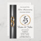 Lovely 25th wedding anniversary card with double wedding bands, black, silver and elegant background.