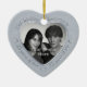 Celebrate 25 years of marriage with a special custom photo ornament in a delightful heart shape frame. Simply upload your own photo of the married couple and it will appear in the cutout. The silver-gray surround features a script font and decorations. (Please note that no actual metallic or shiny ink is used on this ornament, although colors have been chosen to be in keeping with a silver wedding theme.) The words are: 25th Wedding Anniversary - 25 years of love - 25 years of joy. On the back you can personalize this keepsake with your own message for your spouse or the celebrating couple. You can also add the year or a full date if you prefer. Note: if you like the twenty-five year anniversary ornament but have your heart set on a different color, please contact me.