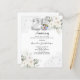 For an elegant and romantic 25th wedding anniversary. A white background decorated with white florals, roses and white lace. Personalize and add your photo, names and details. Number 25 is written with a faux silver looking balloons tyle font.