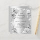 A faux silver looking background. Decorated with florals and a faux silver ribbon. Personalize and add a name and details.