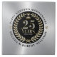 Elegant white glitter and gold 25 years wedding anniversary with metallic silver and black background.