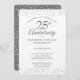 25th Wedding Anniversary Silver Hearts Metallic Invitation