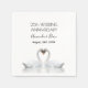 Two beautiful swans in love bending their heads toghether and forming a heart. White elegant background, perfect for a wedding anniversary! A swan couple stay together for life, so they are the perfect symbol of love. With the text: 25th Anniversary. Template for two names, black letters.