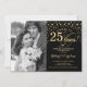 25th Wedding Anniversary with Photo - Gold Black Invitation