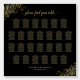 This beautiful wedding seating chart features a design that is simple yet elegant with gold text on a classic black background and ornate golden faux foil lace filigree in the corners. The title is written in fancy script calligraphy and there is room for the names of the couple and wedding date below. Has seating assignments for 260 guests at 26 tables (10 seats per table). Wonderful way to make your reception more beautiful while helping your guests find their tables.