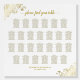 This beautiful wedding seating chart features a design that is simple yet elegant with gold text on a white background and ornate golden faux foil curls and swirls in the corners. The title is written in fancy script calligraphy and there is room for the names of the couple and wedding date below. Has seating assignments for 260 guests at 26 tables (10 seats per table). Wonderful way to make your reception more beautiful while helping your guests find their tables.