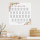 This beautiful 26 table wedding seating chart features a rustic boho chic floral design with hand painted watercolor roses and blossoms in shades of blush pink, coral peach, dusty rose, and mauve. There are sprigs of eucalyptus leaves and garden greenery along with an elegant script calligraphy title, with the names of the couple and wedding date at the bottom. The traditional layout has seating assignments for 260 guests with 10 seats per table. Wonderful way to add beauty, elegance and style to your wedding reception while making it easy for your guests to find their seats.