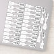 Twenty-six UPC barcode inventory barbell stickers with custom text to create tags for 6 different products x 4 labels each (plus 2 extra) to make a total of 26 classic custom-cut barbell stickers, measuring 5/8 x 3-1/8 inches each. Wrap labels around jewelry, antiques, collectibles or any item from your inventory and fold the two halves together to get the product description on one side and UPC code on the other.