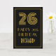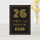 The front of this Roaring Twenties inspired birthday greeting card design features a large Art Deco look inspired number "26", the message "HAPPY 26th BIRTHDAY,", a personalized name, and a border pattern consisting of lines. The inside features a customized birthday greeting message, or could perhaps be cleared and left blank if a message is to be written by hand instead. A custom birthday card like this might be a fun way to send birthday wishes to somebody who is celebrating their twenty sixth birthday. [~Z0000394]