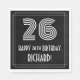 This Roaring Twenties inspired birthday paper napkin design features a large Art Deco style inspired number "26", the message "HAPPY 26th BIRTHDAY,", a custom name, and a border pattern consisting of lines. Fun, personalized birthday themed paper napkins like this might be used at somebody’s twenty sixth birthday celebration. [~Z0000395]
