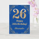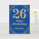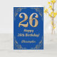 26th Birthday Blue and Gold Glitter Frame Card