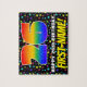This eye-catching and vibrant birthday jigsaw puzzle design features a large number “26” with a multicolored rainbow spectrum inspired gradient pattern, along with the message “HAPPY 26th BIRTHDAY,”, and a customizable recipient name. The background features a cheerful, multicolored star shapes pattern. A colorful, editable birthday puzzle like this might be used to celebrate somebody’s twenty-sixth birthday. [~Z0000607]