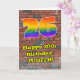 This fun and exciting urban street art and graffiti themed birthday greeting card design features a large number “26” having a multicolored rainbow spectrum gradient inspired pattern. It also features the message “Happy 26th Birthday,”, and a customizable name. The background of the front features a brick wall pattern. The inside has a customizable birthday greeting message, or could perhaps be cleared and left blank if a message is to be written by hand instead. A vibrant, customized birthday greeting card like this might be sent to celebrate somebody’s twenty-sixth birthday. [~Z0000586]