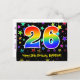 26th Birthday: Fun Stars Pattern, Rainbow 26, Name Postcard