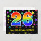The front of this fun, colorful, and exciting birthday postcard design features a large number "26" having a rainbow spectrum gradient inspired pattern. It also features the message "Happy 26th Birthday,", and an editable recipient name. The front additionally features a colorful and vibrant background pattern featuring star shapes of different sizes. The back features an editable birthday greeting message, or could perhaps be cleared and left blank if a message is to be written by hand instead. A personalized birthday postcard like this might be a fun way to send a message celebrating somebody’s twenty sixth birthday. Postcards like this might also be used to invite guests to a birthday celebration being held for somebody who is turning 26 years old. [~Z0000447]