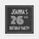 This elegant twenty-sixth birthday celebration/party paper napkin design features a personalized name, an intricate art deco style inspired number “26th”, the message “BIRTHDAY PARTY!”, and a border pattern consisting of lines. The background is colored black by default, but it can be customized to a different color, if desired. Birthday themed paper napkins like these might be used at a birthday party celebrating somebody’s twenty sixth birthday. [~Z0000616]