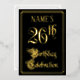The front of this luxurious and fancy foil twenty-sixth birthday party invitation design features the message “26th Birthday Celebration” in ornate script-style text. It also has a personalized name. The background of the front is colored black by default (although it can be customized to a different color). The back features personalized details about the event, such as the date, time, location, and any other relevant information. Ornate, opulent, editable invitations like these might be used to invite guests to a birthday party/celebration being held in celebration of somebody’s twenty sixth birthday. [~Z0000589]