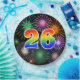 This cheerful, colorful, and fun paper plate design features a large number "26" having a rainbow spectrum gradient inspired pattern coloring. It also features a vibrant and exciting bursting celebratory fireworks inspired pattern. The background is colored black. Fun paper plates like this might be used at a party being held to celebrate somebody’s 26th birthday, a 26th anniversary, or some other twenty sixth event. [~Z0000490]