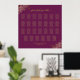 This beautiful wedding seating chart has seating assignments for 27 tables at 10 seats per table or 270 guests. It features a simple yet elegant design with gold text on a magenta or cassis purple colored background and lacy decorative faux foil gold filigree in the corners. The title is written in fancy script calligraphy and reads: Please find your table. Stylish and sophisticated!