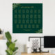 This beautiful wedding seating chart has seating assignments for 27 tables at 10 seats per table or 270 guests. It features a simple yet elegant design with gold text on an emerald green colored background and lacy decorative faux foil gold filigree in the corners. The title is written in fancy script calligraphy and reads: Please find your table. Stylish and sophisticated!