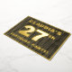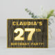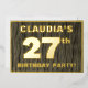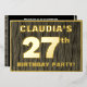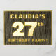 The front of this bold twenty-seventh birthday celebration/party foil invitation card features a personalized name, a large number “27th”, the message “BIRTHDAY PARTY!”, and a border, all in foil. The background of the front features a rustic, yet sophisticated, faux wood grain appearance inspired pattern. The back features personalized details about the event, such as the date, time, location/venue, and any other useful information. Customizable invitations like these might be used to invite guests to a birthday gathering/party being held to honor somebody’s 27th birthday. [~Z0000598]