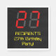This geeky and fun birthday themed paper napkin design features a large number "27" with a red seven segment digital display style look, along with a customizable name and the message "27th Birthday Party!" in nerdy computing-inspired yellow text, on a black colored background. Birthday themed paper napkins like this might be fun to use at a party being held to celebrate somebody’s twenty seventh birthday. [~Z0000388]