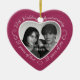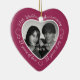Celebrate a 27th happy year of marriage with a custom photo ornament in a delightful heart shape frame. Simply upload your own photo of the married couple and it will appear in the cutout. The rose colored surround features a white script font and decorations. The words are: 27th Wedding Anniversary - 27 years of love - 27 years of joy. On the back you can personalize this keepsake with your own message and can also add the year or a full date if you prefer. Note: if you like the twenty-seven year anniversary ornament but have your heart set on a different color, please contact me.