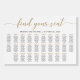 Faux Gold Glitter Calligraphy Seating Find Your Seat people for 224-280 guests (8-10 people at one table). An elegant design in gold, black and white or any background color you choose. Just click the customize further link, shown under the text personalization area on the right, and choose your custom color background. This sign poster template makes it fast and easy to create stunning additions to your wedding décor. Signs can be decreased, there are many sizes to choose from, as well as options for custom framing and matting.