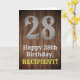 This country look and American Wild West inspired birthday greeting card design features a large rustic inspired number "28", the message "Happy 28th Birthday,", an editable name, and a faux/imitation wood grain inspired style pattern background. The inside has an editable birthday greeting message, or could perhaps be cleared and left blank if a message is to be written by hand instead. An editable birthday greeting card like this might be a fun way to send a birthday greeting message to somebody who is celebrating their twenty-eighth birthday. [~Z0000469]