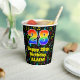 This joyful and cheerful music themed birthday paper cup design features a large number “28” having a rainbow spectrum gradient inspired pattern. It also features the message “Happy 28th Birthday,”, and a personalized name. The background features a colorful pattern of various music notes and symbols having a variety of colors and sizes. Colorful, vibrant paper cups like this might be fun to use at a birthday celebration being held to honor somebody’s twenty eighth birthday. [~Z0000541]
