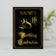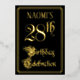 The front of this opulent, elegant, foil twenty-eighth birthday party/celebration invitation design features the message “28th Birthday Celebration” in luxurious script-style text. It also features a customizable name. The background of the front is colored black by default (although it can be customized to a different color). The back features personalized details about the event, such as the date, time, location, and any other information that may be relevant. Fancy, ornate, personalized invitations like these might be used to invite guests to a birthday celebration/party being held to celebrate somebody’s twenty eighth birthday. [~Z0000589]