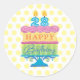 28th Happy Birthday Cake Yellow Dots Classic Round Sticker