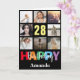 28th Happy Birthday Photo Collage Modern Black Card with personalized name. For further customization, please click the "Customize it" button and use our design tool to modify this template.