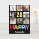 28th Happy Birthday Photo Collage Modern Black Card