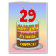 29th Birthday: Fun Cake & Candles, w/ Custom Name Card