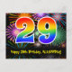 29th Birthday – Fun Fireworks Pattern + Rainbow 29 Postcard