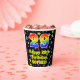 This joyful and fun birthday paper cup design features a large number “29” having a rainbow spectrum gradient inspired pattern. It also features the message “Happy 29th Birthday,”, and an editable name. The background features a colorful star field inspired pattern. Vibrant, colorful paper cups like this might be fun to use at a birthday celebration being held in celebration of somebody’s twenty ninth birthday. [~Z0000540]