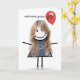 Cute stick figure girl with blond hair, sneakers, denim dress, and red balloon for 29th birthday.